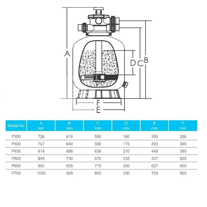 Фильтр Aquaviva P450 используется для обслуживания небольших каркасных и стационарных бассейнов, объемом до 32 тыс.л. Производительность фильтра составляет 7.8 м³/ч.