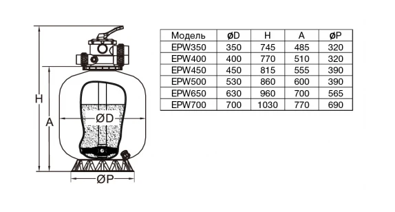 Фильтр EPW350, шпул. навивки, d.350мм, 4.5м³/ч, верх.подкл. 1½", без вентиля