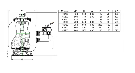 Фильтр KS450, шпул. навивки, d.450мм, 8м³/ч, бок. подкл. 1½", без вентиля