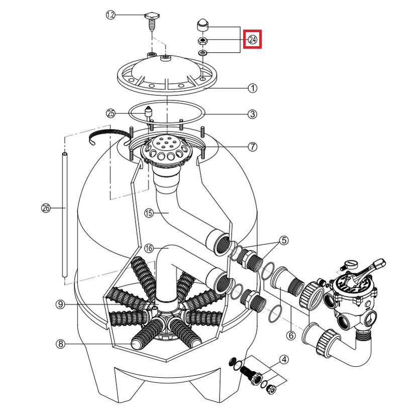 Гайка, шайба, колпачок крышки (комплект 8 шт.) RRFI0024.00R