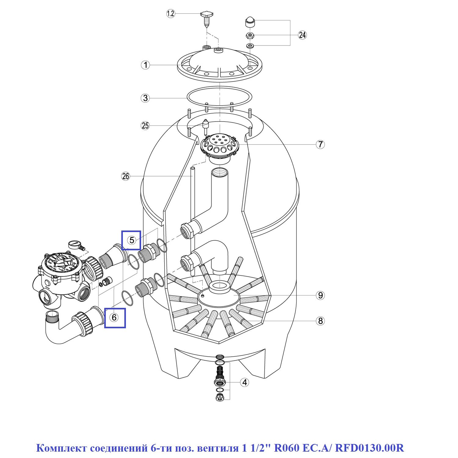 Комплект соединений 6-ти поз. вентиля 1 1/2" R060 EC.A/ RFD0130.00R