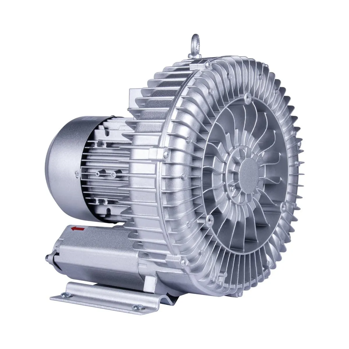2) За счет движения и формы лопастей крыльчатки, создается центробежная сила и давление, которые предают воздуху скорость. Каждое вращение увеличивает кинетическую силу, что еще больше повышает давление внутри спирального канала и направляет сжатый воздух в выходное отверстие.