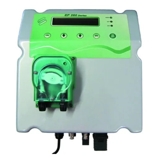 Контроллер EF263 Steiel pH/Rx/SCh c перистальтическим насосом 4 л/ч и возможностью подключения электролизера для бассейна 300м3 - автоматическая станция (дозатор) обработки воды для бассейна с внешним управляющим выходом для подключения электролизера (хлоринатора) или дозатора EASIFLO. Станция оборудована многоязыковым графическим ЖКИ-дисплеем (2 строки по 16 символов) подсветкой и энергонезависимой памятью, встроен контроль уровня реагента.