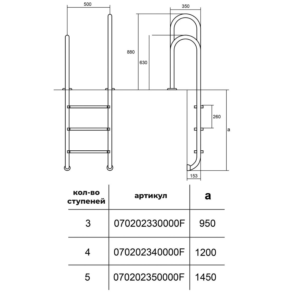 Лестница Hayward Asymmetric Muro AISI 304 (3 ступени), для узкого борта