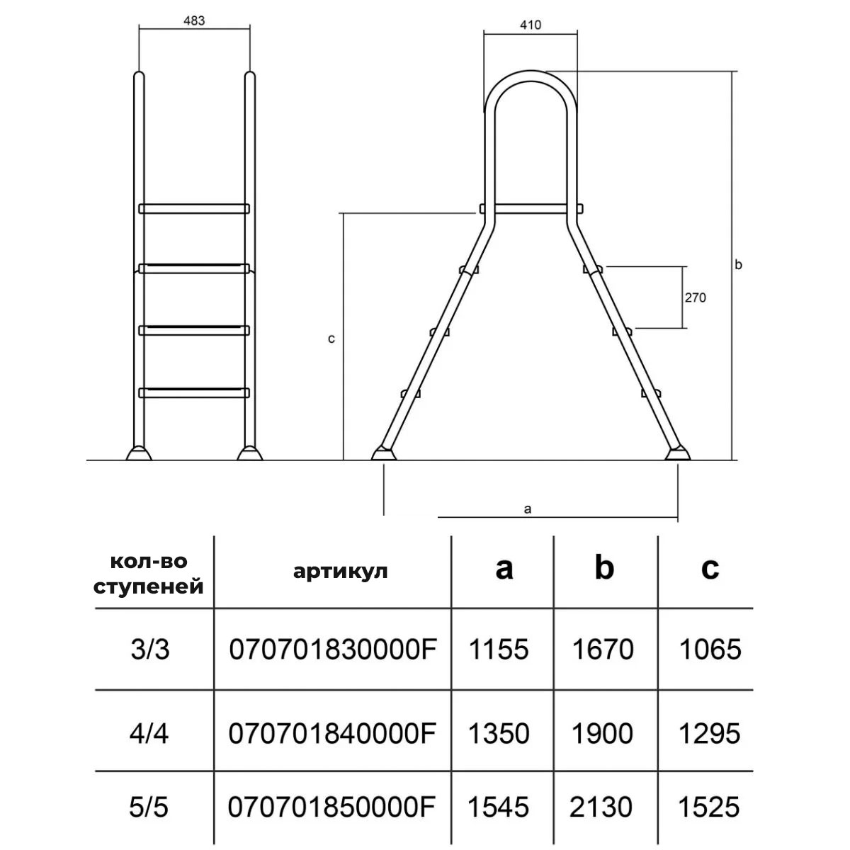Лестница Hayward EEP3HF для наземных бассейнов 3cт ABS AISI-304