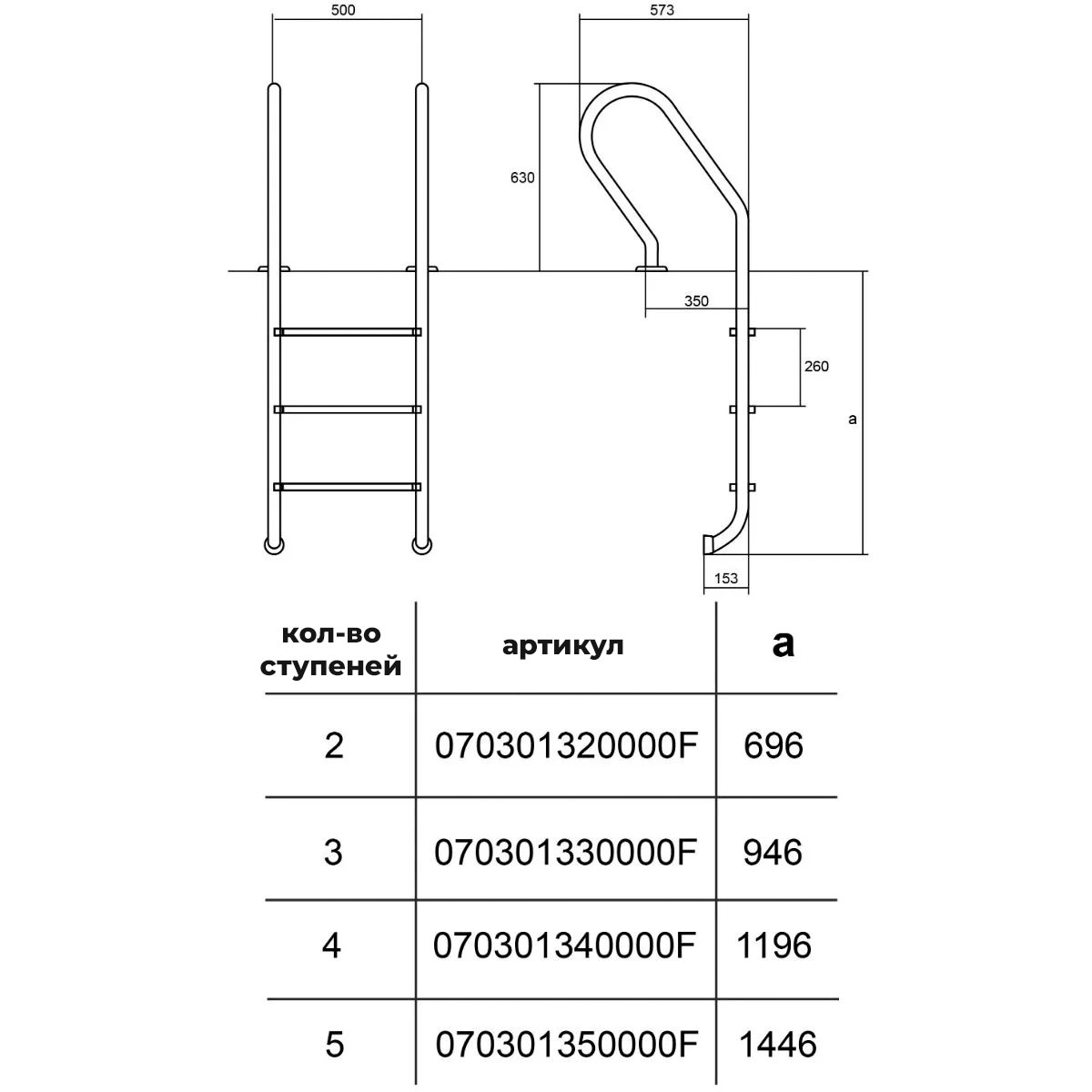 Лестница Hayward Mixta AISI 304 (4 ступени), для узкого борта