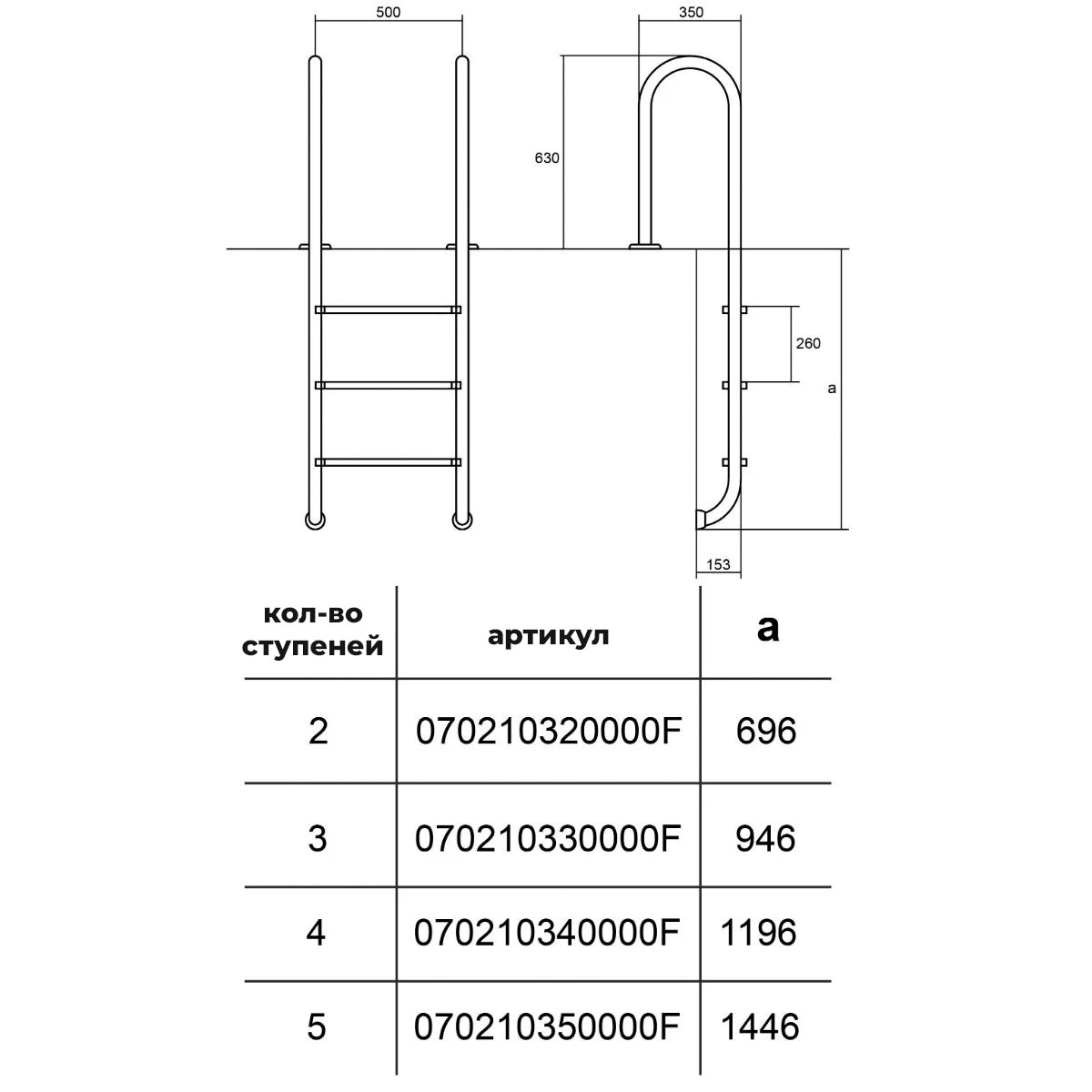Лестница Hayward Muro AISI 316 (2 ступени), для узкого борта
