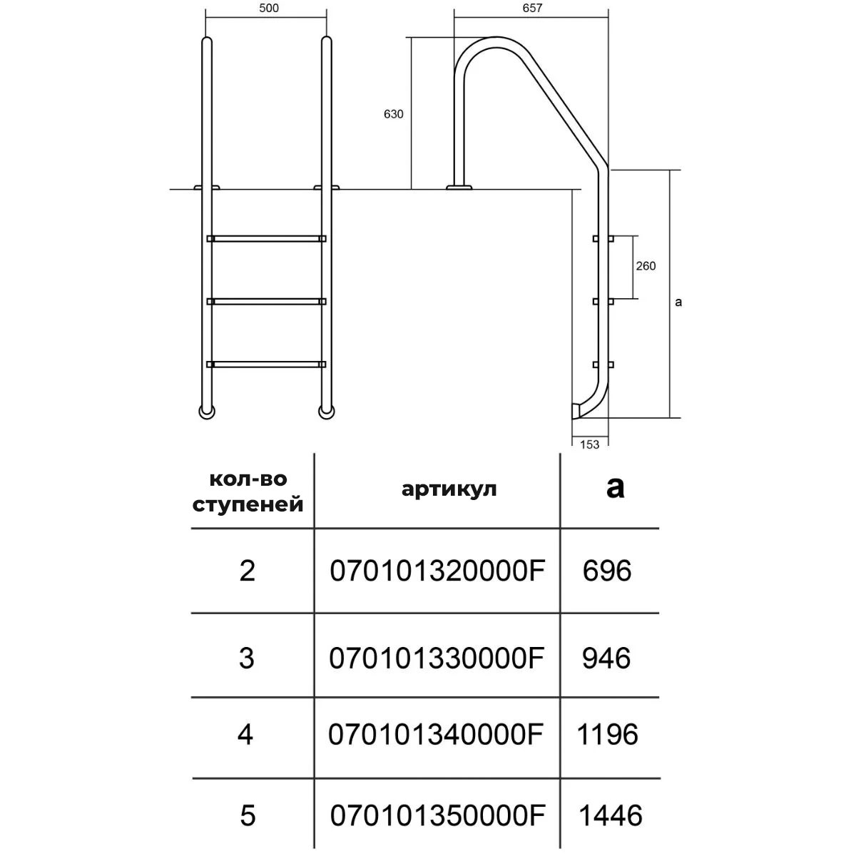 Лестница Hayward Standard AISI 304 (5 ступеней), для широкого борта