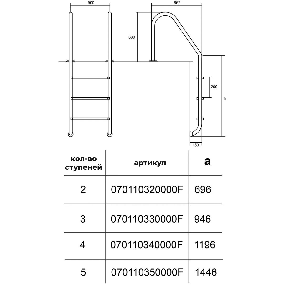 Лестница Hayward Standard AISI 316 (3 ступени), для широкого борта