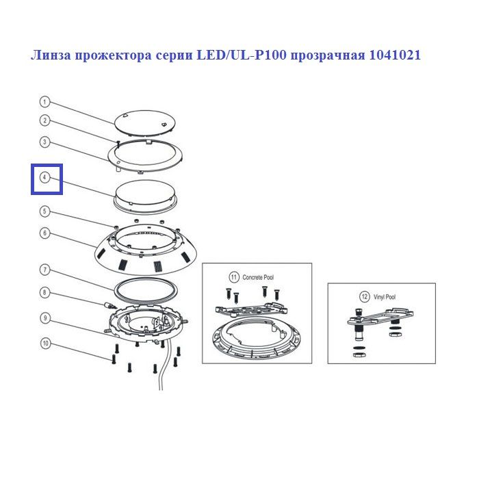 Линза прожектора серии Aquaviva LED/UL-P100 прозрачная 1041021