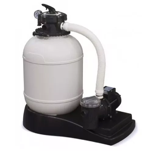 Фильтр изготовлен из пластика. Оснащен быстросъемной крышкой, многопозиционным клапаном и манометром. Ручной клапан сброса воздуха и воды. Литая основа черного цвета, корпус фильтра белого цвета. Максимальное рабочее давление 2 кг/cм2. Соответствует требованиям к фильтрации согласно стандарту EN 16713-1.