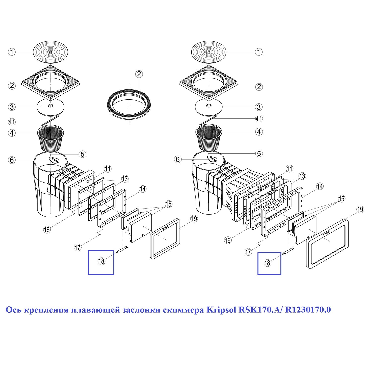 Ось крепления плавающей заслонки скиммера Kripsol RSK170.A/ R1230170.0