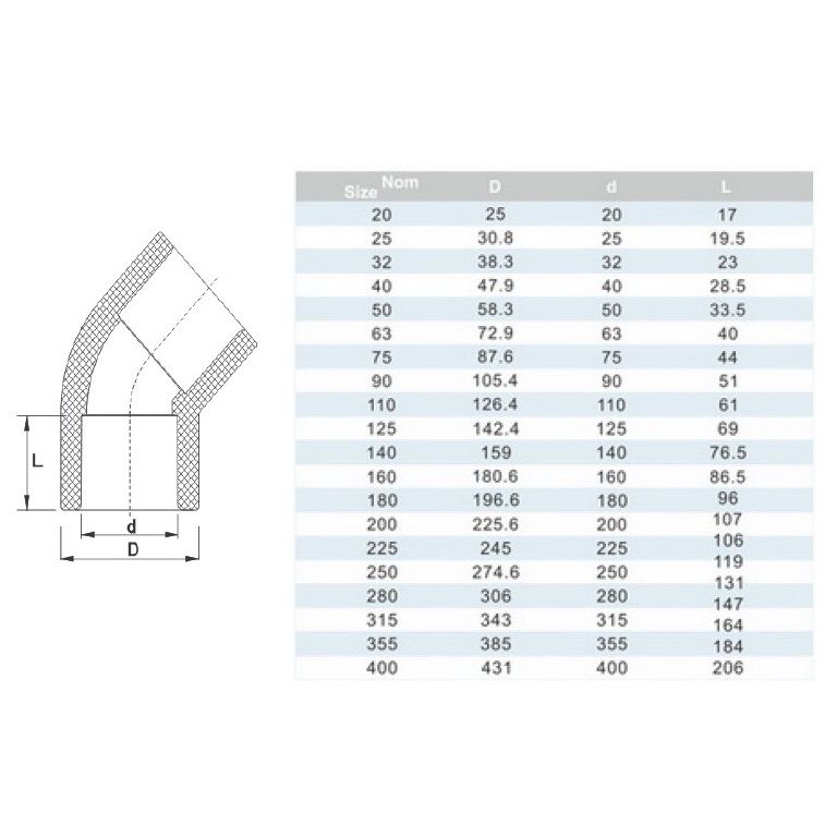 Отвод ПВХ 45°/25 мм