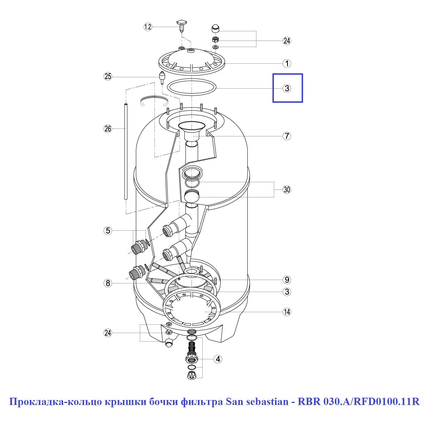 Прокладка-кольцо крышки бочки фильтра San sebastian - RBR 030.A/RFD0100.11R