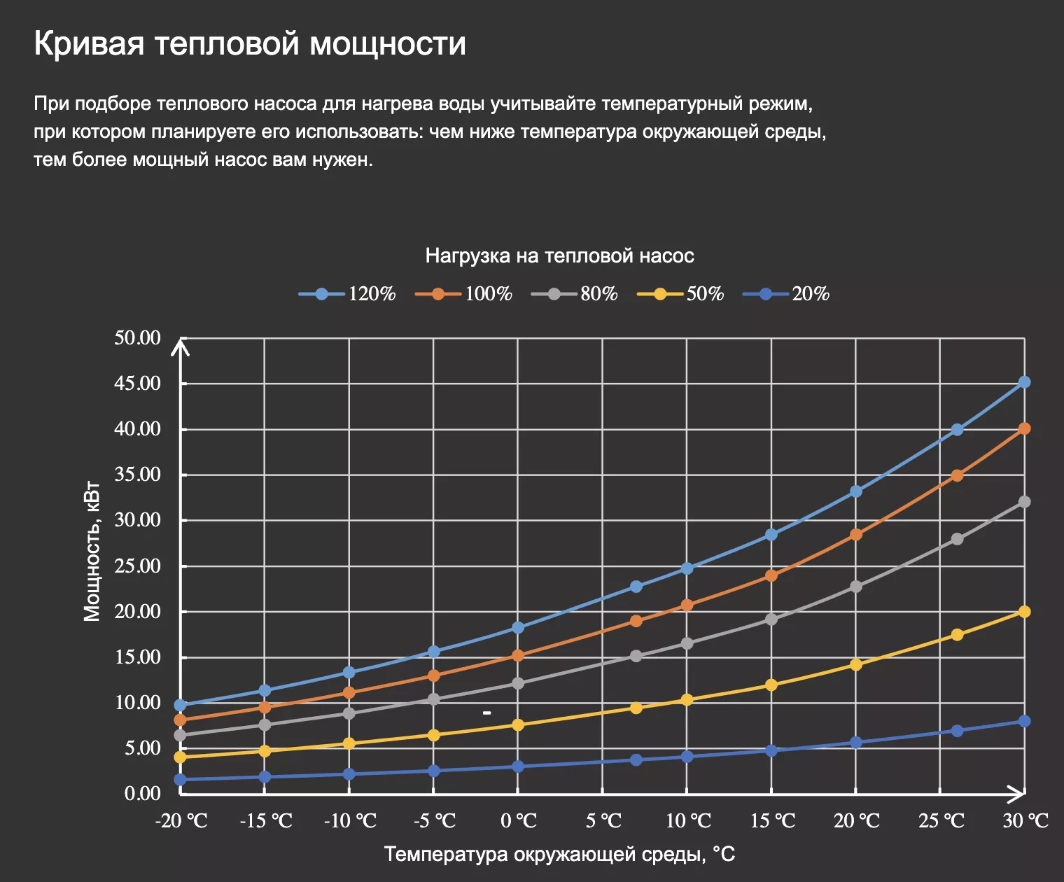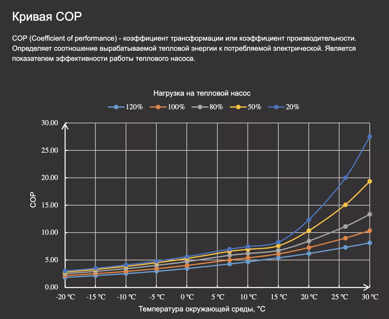 <span style="font-size: 26px; color: #f2c40f;"><strong id="Q3L7X8X">Эффективность работы теплового насоса Aquaviva AVX20-40CT в зависимости от температуры окружающей среды</strong></span>