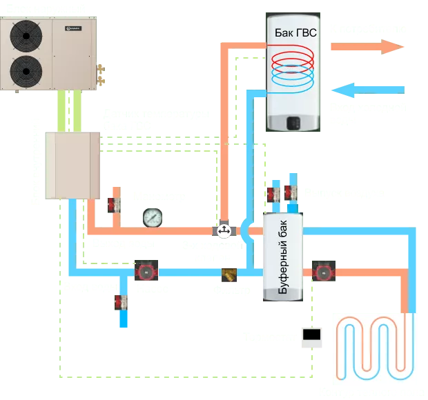 <span style="color: #ff6600;"><strong>Схема подключения тепловых насосов Aquaviva AVH</strong></span></h2>