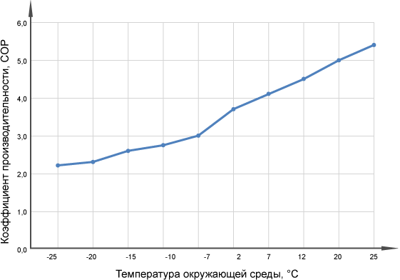 Эффективность работы теплового насоса Aquaviva AVH, в зависимости от окружающей среды