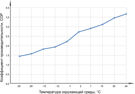 СОР (Coefficient of perfomance) - коэффициент трансформации или коэффициент производительности. Определяет соотношение вырабатываемой тепловой энергии к потребляемой электрической.