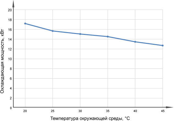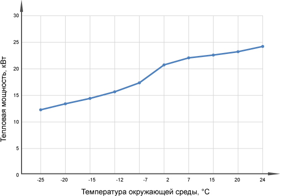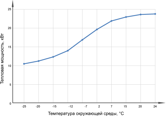 Эффективность работы теплового насоса Aquaviva AVH, в зависимости от окружающей средыКривая тепловой мощности