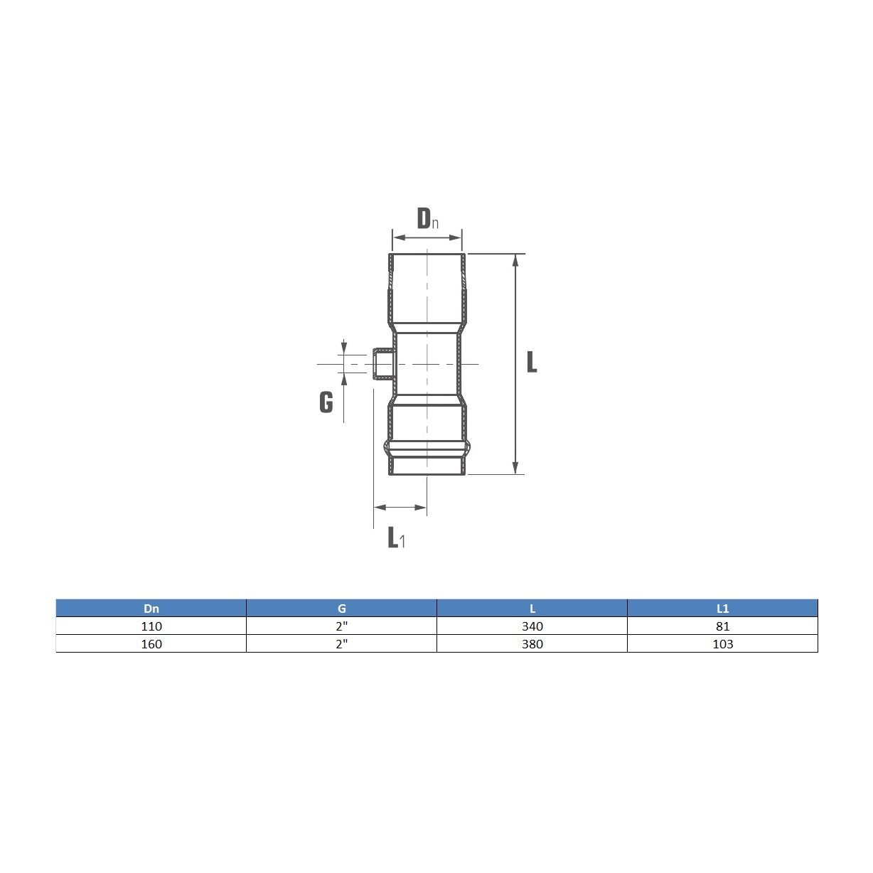 Тройник 90° ПВХ Aquaviva раструбный с резьбовым выходом 160/2"
