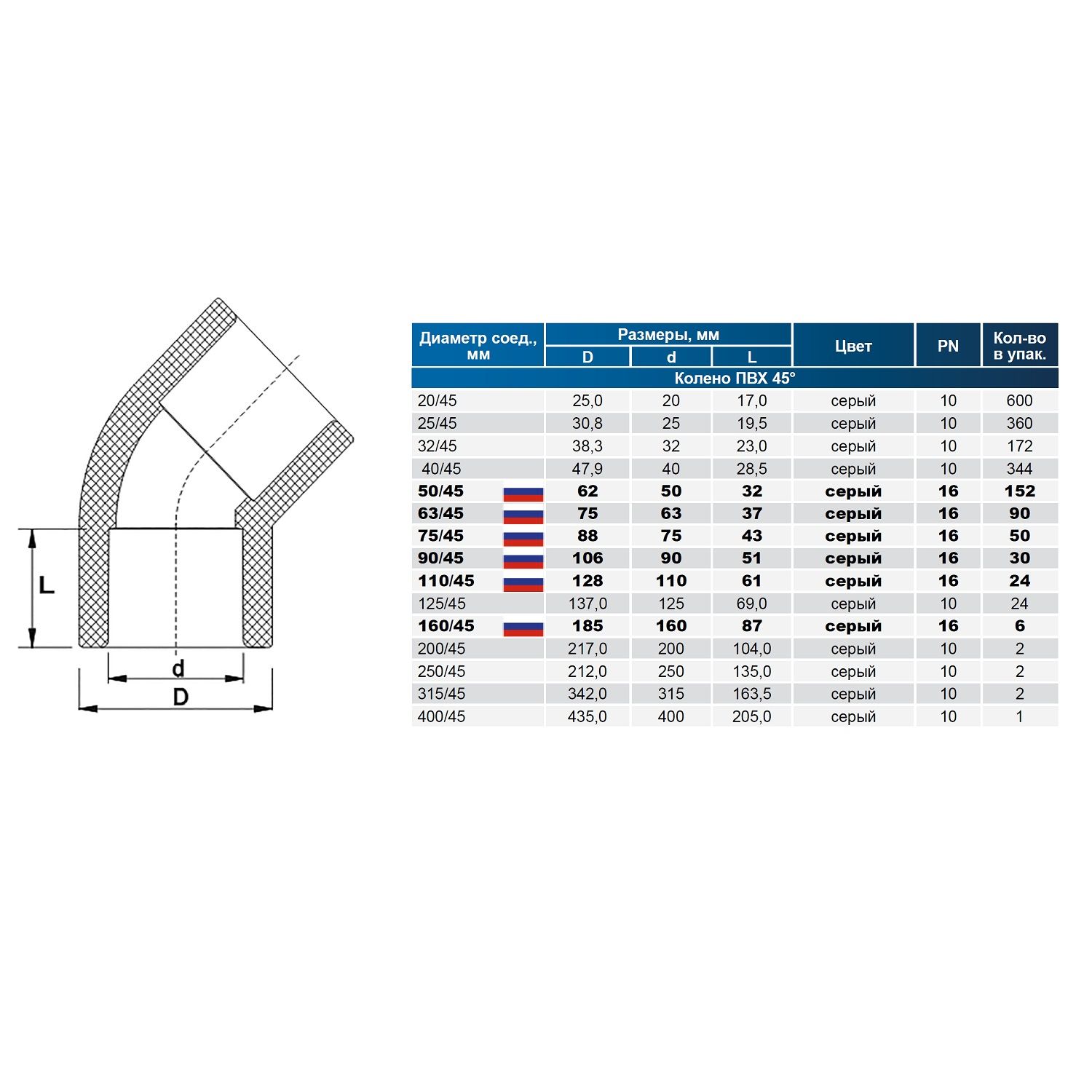 Угол клеевой 45° d50 PN16 AQUAVIVA