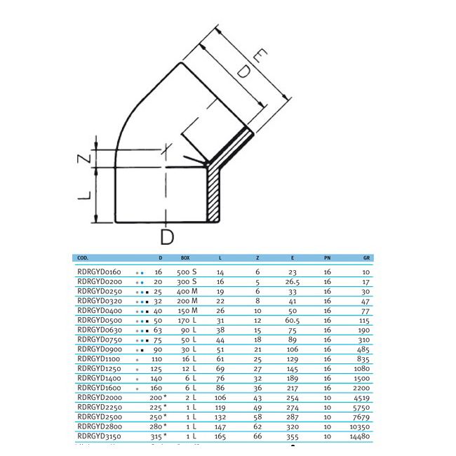 Угол клеевой 45° EFFAST d20 мм (RDRGYD0200)