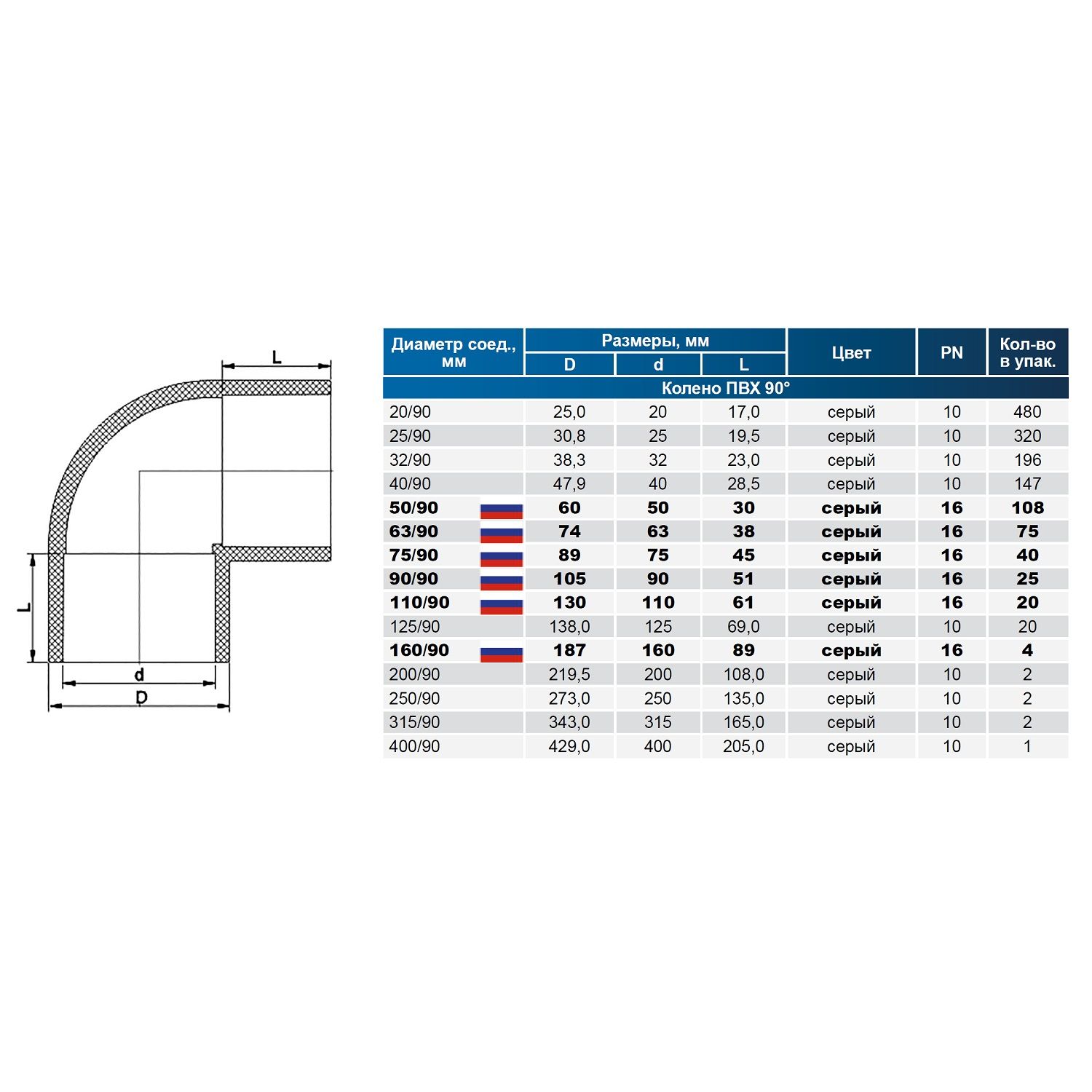 Угол клеевой 90° d50 PN16 AQUAVIVA