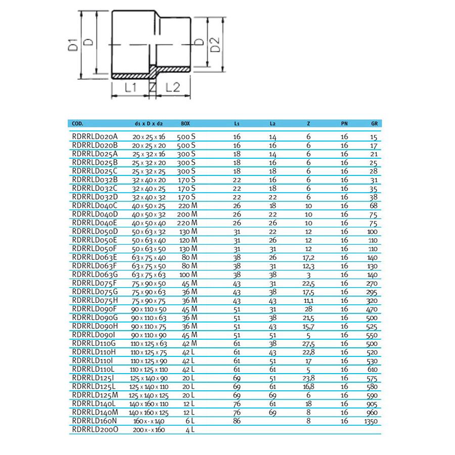 Втулка редукционная ПВХ EFFAST d90x110x50 мм (RDRRLD090F)